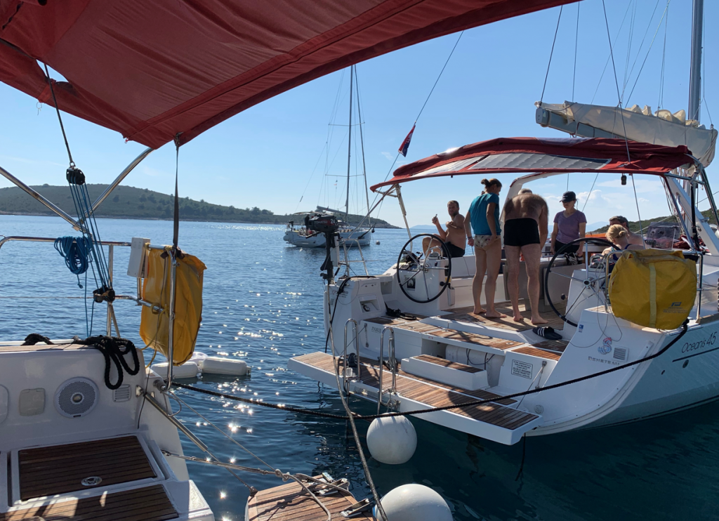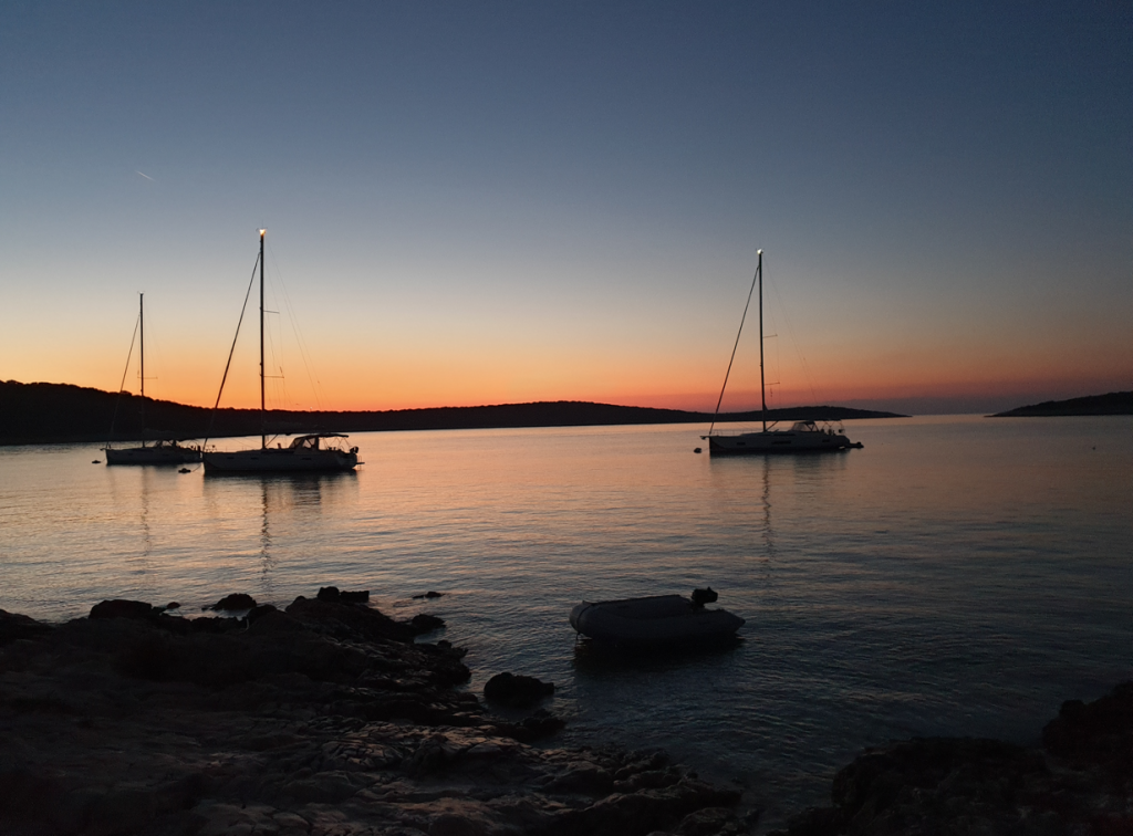 Highlights: bei Flaute haben wir uns mit einem Dinghirennen um unsere Yachten ausgetobt. Bei Wind gab es eine Regatta rund um eine kleine Insel. Zum Mittag haben wir in Buchten geankert, geschwommen und Mittag gegessen. In den Buchten wurde abends zusammen gekocht. Wir hatten reichlich eingekauft.