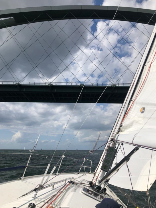 Im Fahrwasser Brücke Fehmarn kamen wir dann in ein Regattafeld Rund Fehmarn. Wir segelten einige Zeit mit, haben dann aber nach der Brücke Vorfahrt gewährt, da einige Segler da Messer zwischen den Zähnen hatten. Da wollten wir nicht dazwischen geraten.