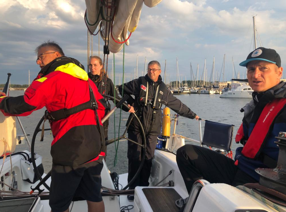 Jeder segelte uns eine Zeit lang als Rudergänger. Eine Klasse Crew. Es klappt perfekt zusammen.