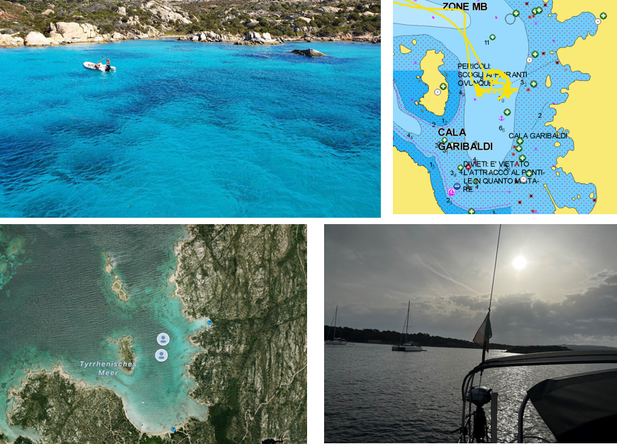 Für die Nacht haben wir uns wieder eine der schönsten Ankerplätze ausgesucht. Cala Garibaldi. Zum Abend hin kommen die ersten Sturmmeldungen ab ca. 2 Uhr in der Nacht. Natürlich mit einem 180° Winddreher. Daher gehen wir noch etwas von den Felsen weg. In der Nacht sind wir dann ab 2:00 wach und halten Ankerwache. Die Yacht nebenan ist leider in die Felsen getrieben. Am nächsten Morgen erzählt die Crew von leichter Grundberührung. Wir haben keine Probleme. Nur etwas Schlafmangel;-)